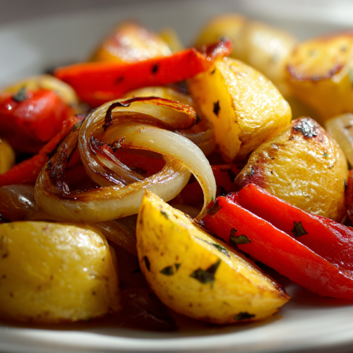 Roasted Potatoes with Sautéed Peppers and Onions
